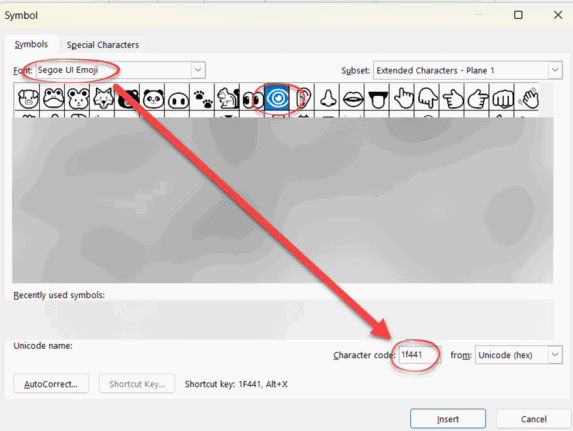 Fun Eyes 👀 symbol in Word, Excel, PowerPoint and Outlook