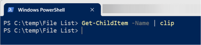 Get-ChildItem -Name | clip