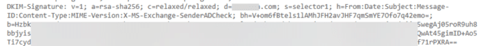 If you’re really interested in seeing the DKIM details included with the sent message, search for ‘DKIM-Signature’. In a typical email it’ll look like this, mostly an encrypted ‘hash’ that verifies the message content.