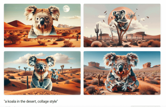 Ask Copilot for an image such as “make image of a Koala in the desert”, select one of the thumbnails to see the full size version. What’s new are the style choices at the bottom.