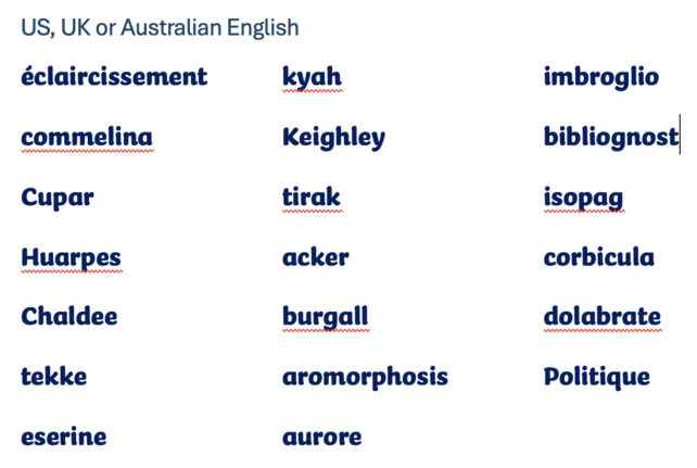 This year, Microsoft Word gave the same spelling responses in US, UK and Australian English