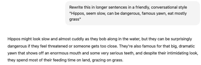 At its simplest, ask the AI to rewrite by typing ‘Rewrite this …’ then paste some text within quote marks.