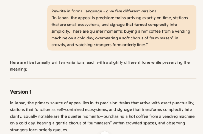 “Rewrite in formal language – give five different versions”