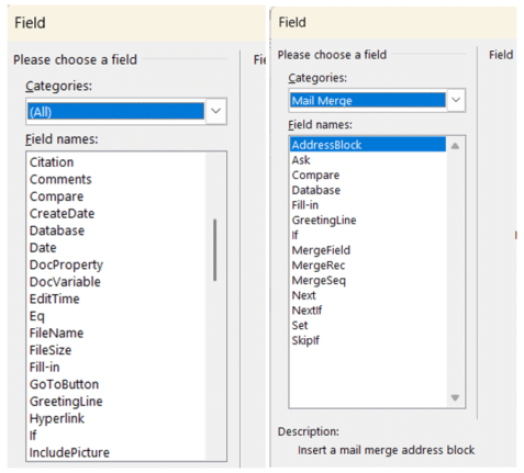 It’s not like either field code is new. They were added (oh so quietly) in Word for Windows 2016 and now available in Word for Windows in Microsoft 365 plus Windows versions of Word 2024 Word 2021 and Word 2019 as well.