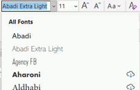 You may have seen cloud fonts already, they appear in the font pull down lists in Microsoft 365 for Windows and Mac. Look for the little ‘cloud plus arrow’ icon.