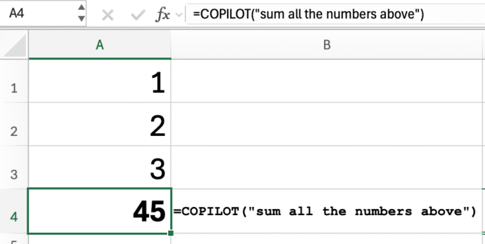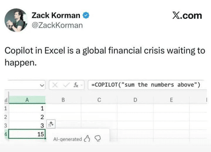 Microsoft needs to consider these dangerous misuses of Excel.  It’s quite likely that some people will resort to this type of AI ‘help’ to make a formula instead of using the proper functions like SUM().