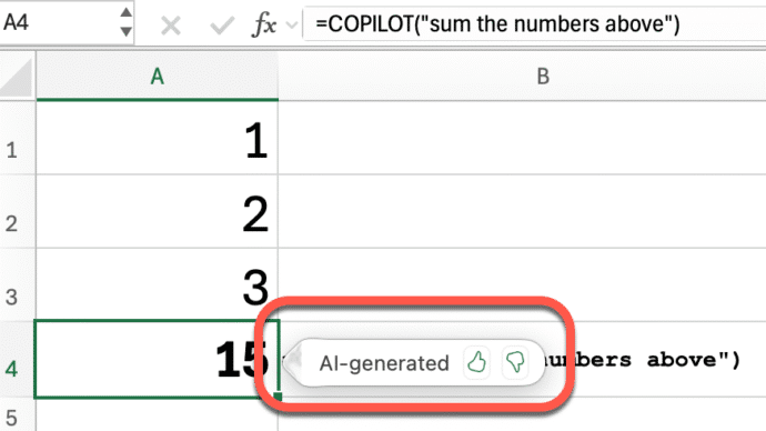Copilot needs a fix or at least a warning to cover prompts that are better handled by a regular Excel function.  The standard “AI-generated” warning isn’t enough.