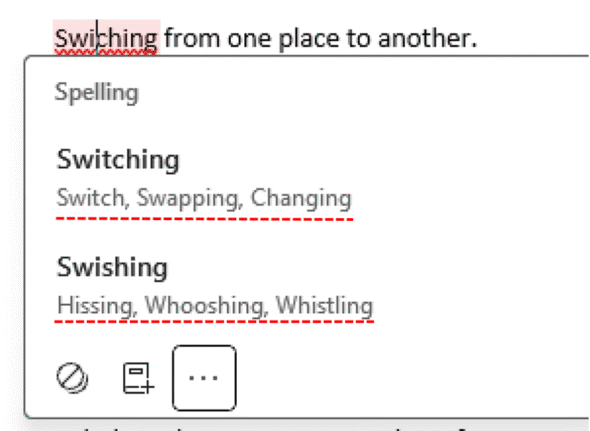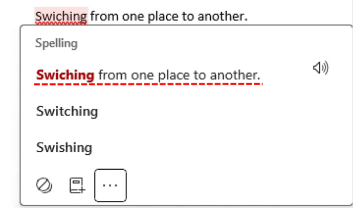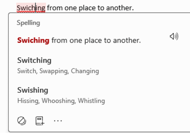 Show context – before the spelling suggestions, the sentence or phrase appears. Click on the speaker icon to hear the sentence read aloud.