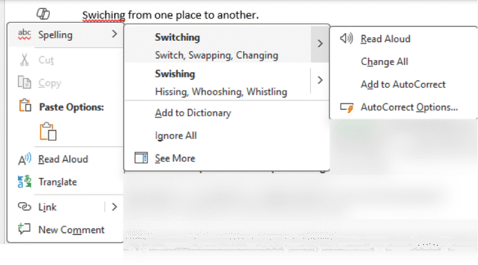 Simply click the underlined word to view suggested corrections. Choose the right option, and Word will replace it instantly. So far, so easy.