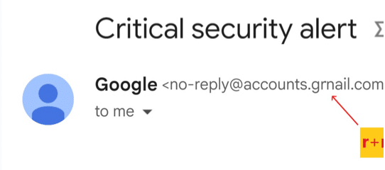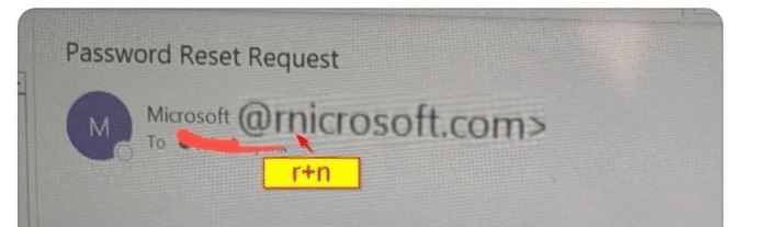 The lower-case letters “rn” can be mistaken for the letter ‘m’ in some fonts and displays. Here’s two examples from social media from malicious emails.