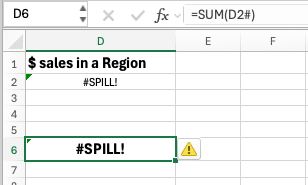 If the list needs more rows, there’s a #SPILL error because the SUM() in D6 is blocking the array.