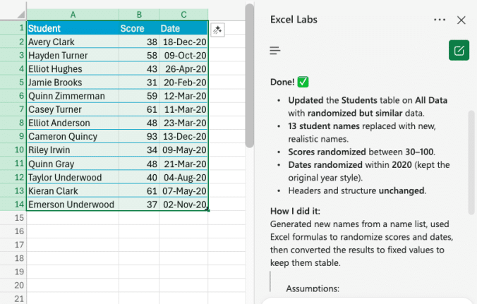 Unlike the existing Copilot in Excel features, Agent can work directly with Excel sheets and cells. There’s no need to copy/paste suggestions from a side-pane.