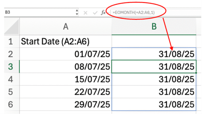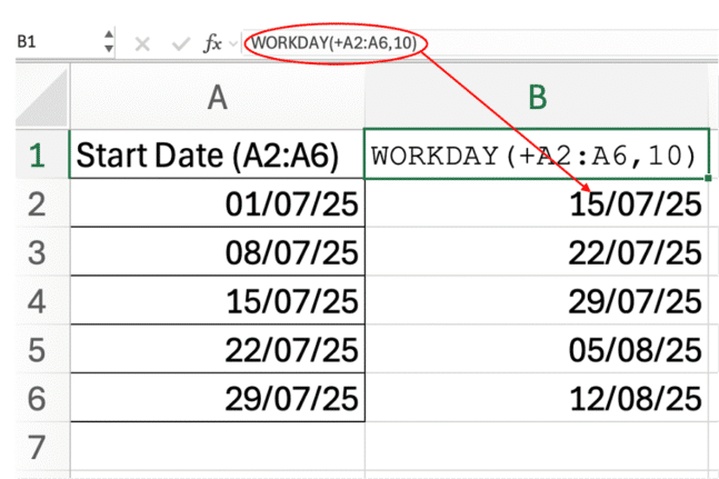 This trick doesn’t just work with only EOMONTH. You can apply it to many legacy functions that were never designed with dynamic arrays in mind, such as WEEKNUM, EDATE, WORKDAY, NETWORKDAYS.