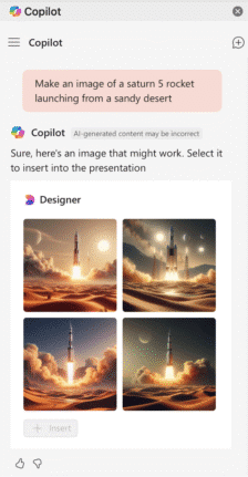 Once Copilot has made an image you like, select it and click Insert.