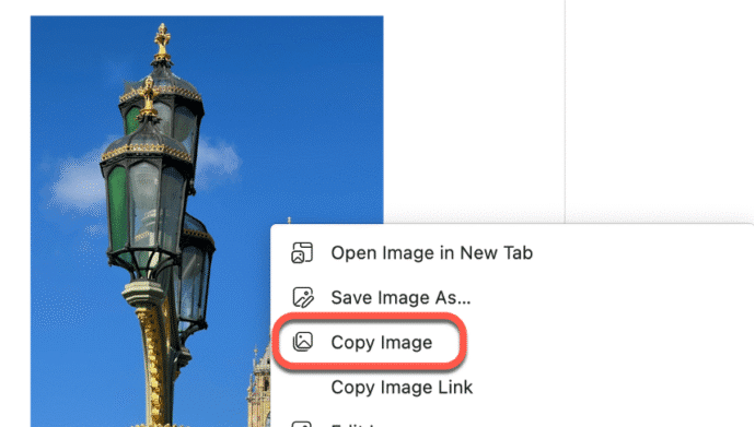 Or right-click on the image to see a “Copy Image” option. Browsers will have an image copy option like this, the exact wording may be different, depending on the browser.