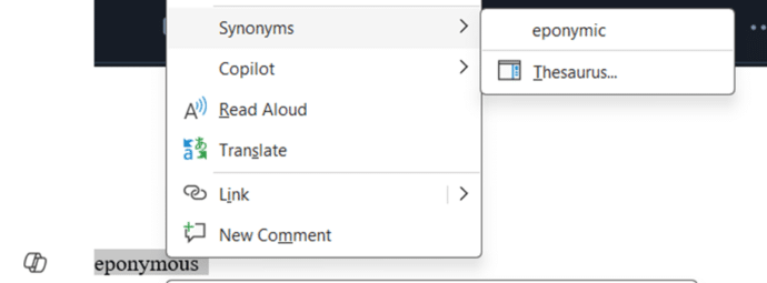 Here’s Word’s Thesaurus or “Synonyms” still in Word 365 using Microsoft’s example word.