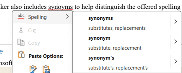 The enhanced spell checker also includes synonyms to help distinguish the offered spelling corrections.
