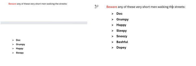 Here are two examples of “Keep with Next” at work in the paragraph before a list or picture. Before KWN (left) and After KWN (right)