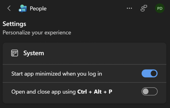 Think of the People and Calendar apps as “mini-Outlooks” which have some of the elements of Outlook. They are small, taskbar-pinned helpers that surface your Microsoft 365 help info without jumping between full apps (SharePoint, Teams etc) or Outlook windows.