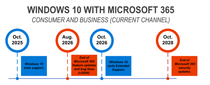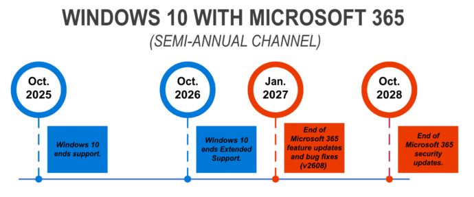 Confused? That’s part of Microsoft’s plan to get people onto Windows 11 by fair means or foul. Below are timelines showing when Windows 10 and Microsoft 365 end support.