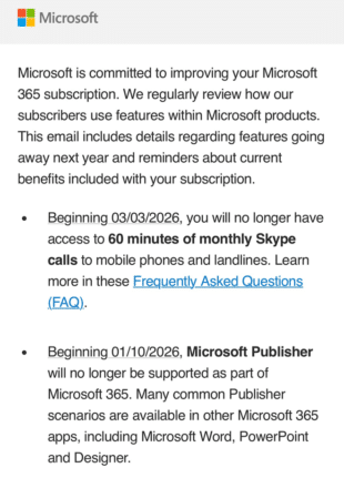 - Publisher 365 isn’t just losing support on October 1, 2026. The whole app will be disabled completely.