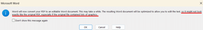 Importing a PDF into Word also has a warning “it might not look exactly like the original PDF, especially if the original file contained lots of graphics”.