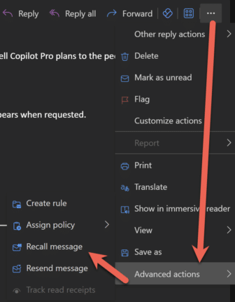 This is also the place for one of Peter’s favorite Outlook features, Resend a message.