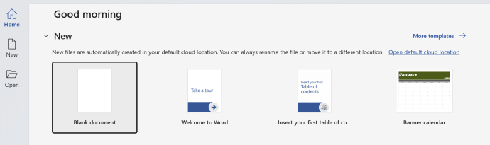 However, the change in default document name is NOT consistent. If “Create new files in the cloud automatically” is turned OFF, the old ‘Doc1’ ‘Doc2’ naming applies.
