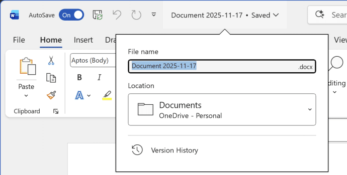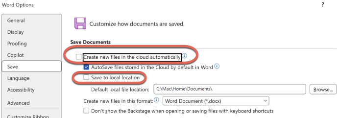 Don’t confuse with an existing option at File | Options | Save which is in Word 365 (for the moment), Word 2024 and Word 2021 (for Windows).