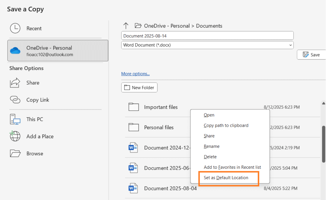 The right-click menu option “Set as Default Location” should really be called “Set this cloud folder as Default Location”.