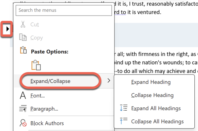 There’s also an Expand/Collapse right-click menu that lets you show/hide all headings. Like Navigation Pane, it’s an “all or none” choice.