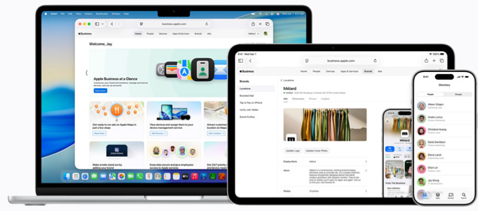 The platform brings together mobile device management, business email and calendar with custom domain support, and tools to help businesses appear in Apple Maps, Mail, Wallet, and Siri.