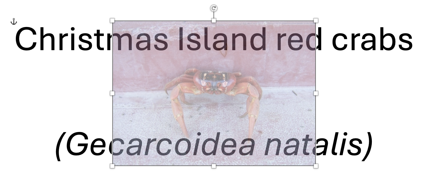 In this example there are two images on the page (see Selection Pane at right) but ‘Crab on a rock’ is in a lower layer hidden beneath the other crab image.