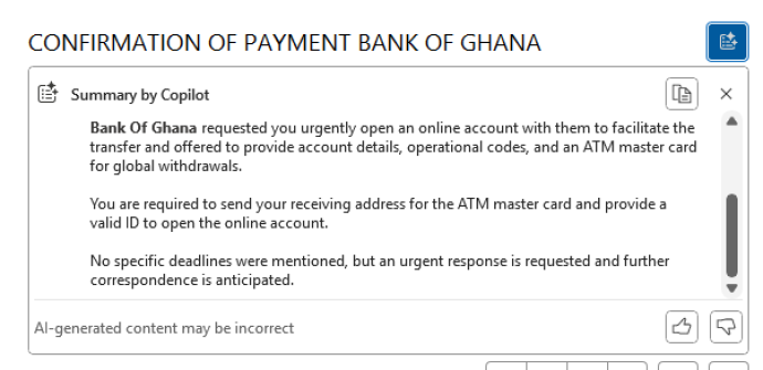 Sometimes even obvious spam and phishing messages reach inboxes despite Outlook’s advanced filters, AI detection, and stricter security rules. Here’s one 2026 example and how Copilot responds …. badly.