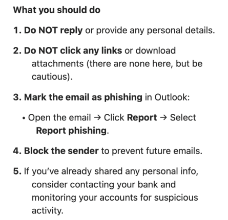 “This email is almost certainly a scam. Here’s why and what you should do:”