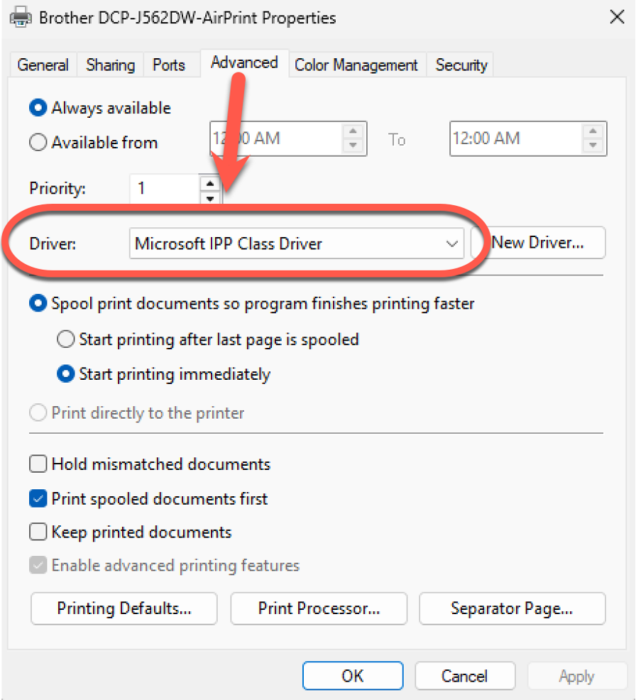 • “Microsoft IPP Class Driver” – you’re good to go.