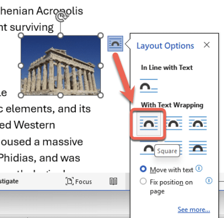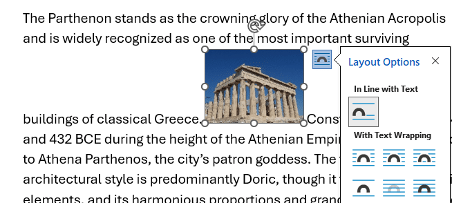 This is just the start of the many image positioning choices in Word.