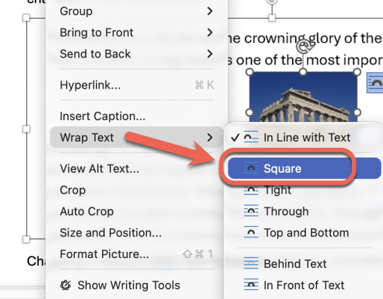 In Word for Mac, right-click on the image and go to Wrap Text | Square.